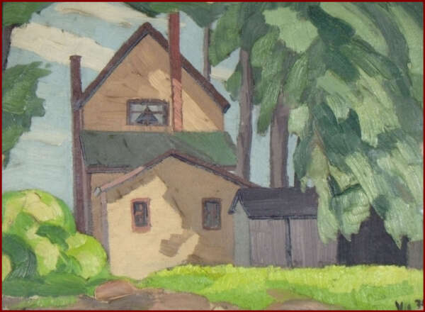 One of a vibrant collection of artist study paintings. The painting are cheerfully capturing the juxtaposition of nature and buildings in their real time settings. Each with a high-chrome palette that immediately draws the viewer in. Paint pigments are layered with energetic brush work having a heavy pallet. The artist seems to have little concern with the subjects, but is challenged with the ability of capturing the natural light and the effects of shadows. The artist has created a balance between a impressionistic surface and a sense of realism.