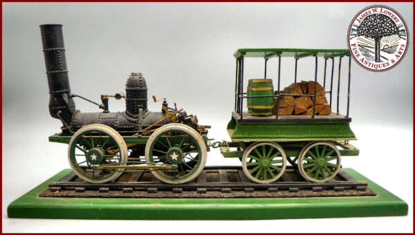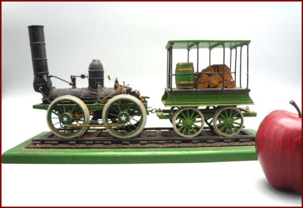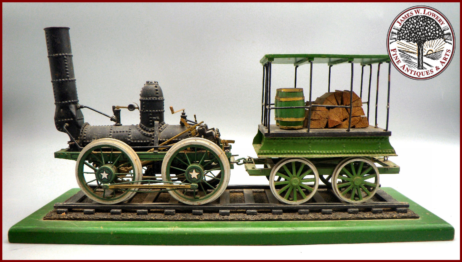 Milo Smith a 20th Century Herkimer, N.Y. folk artist has created this Clinton Dewitt Steam Engine. It is believed to be the first of many carving he made. In original condition this engine is resplendent for its detailing and true scaling. Realistically we still get a clear vision that translates the realm of folk art within this sculpture.