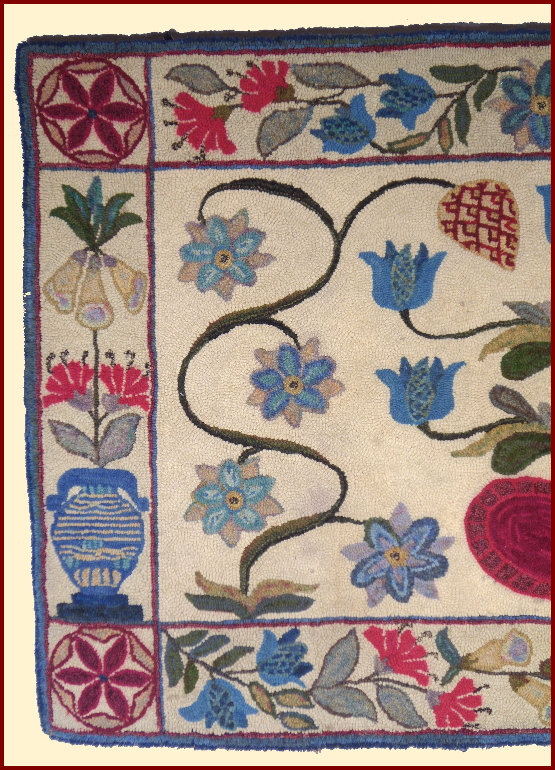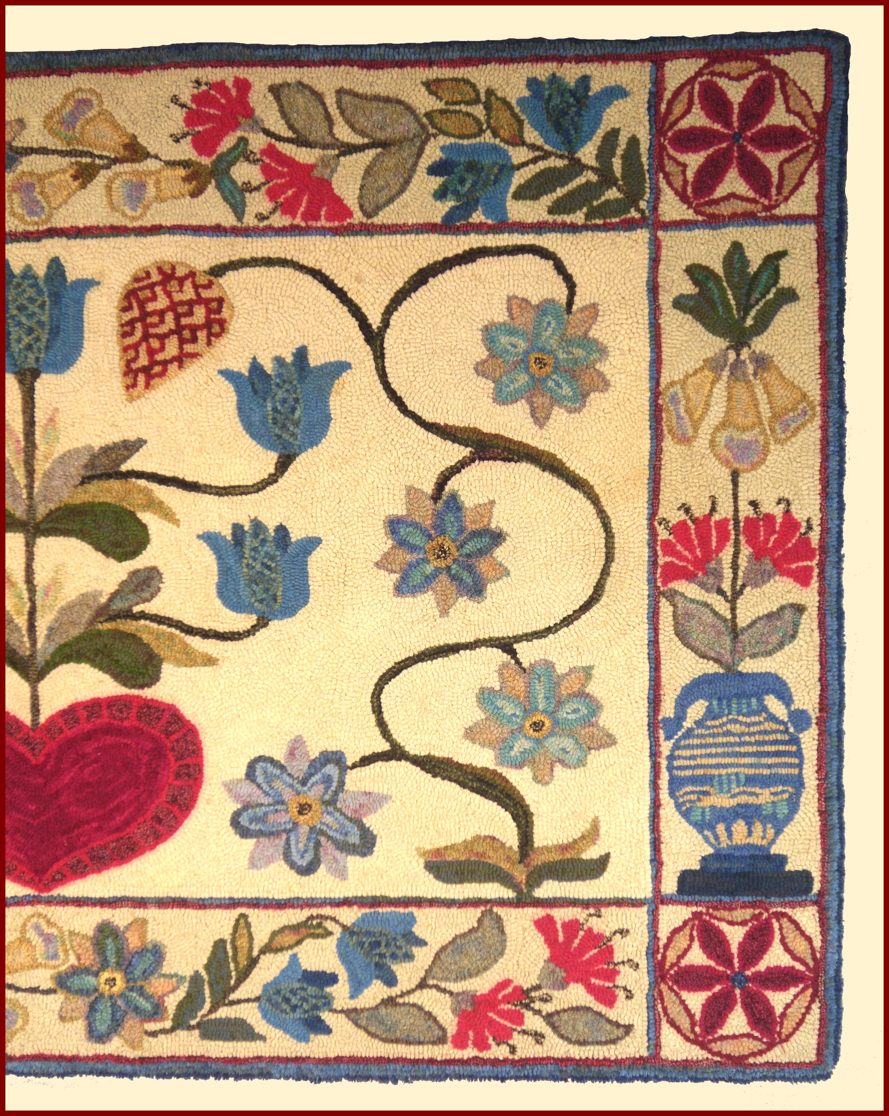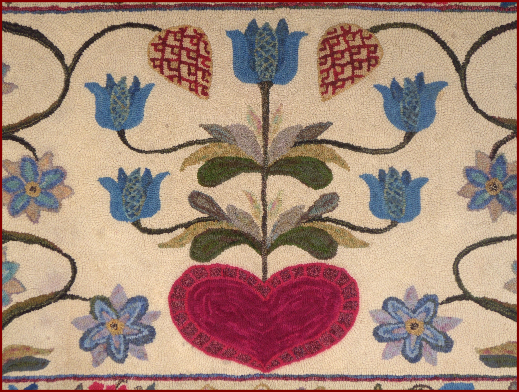 HOOKED RUG HEART and FLOWERS and STEMS