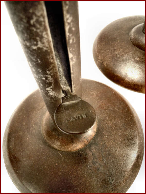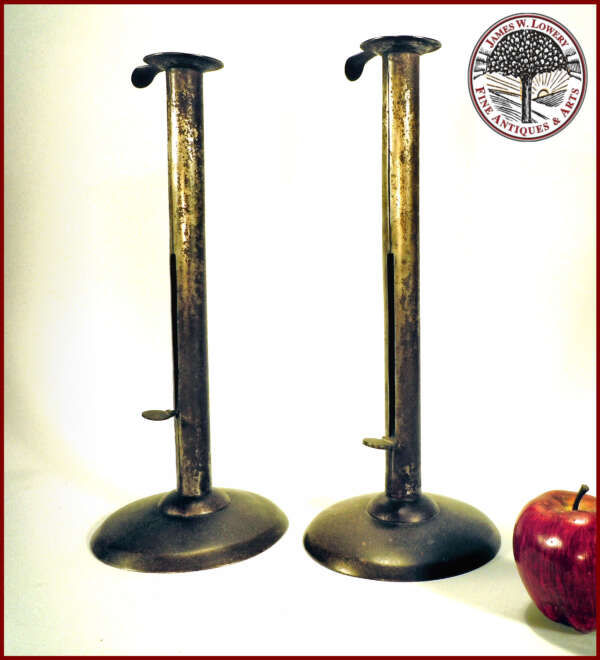 RARE PAIR LARGE HOG SCRAPPER CANDLESTICKS