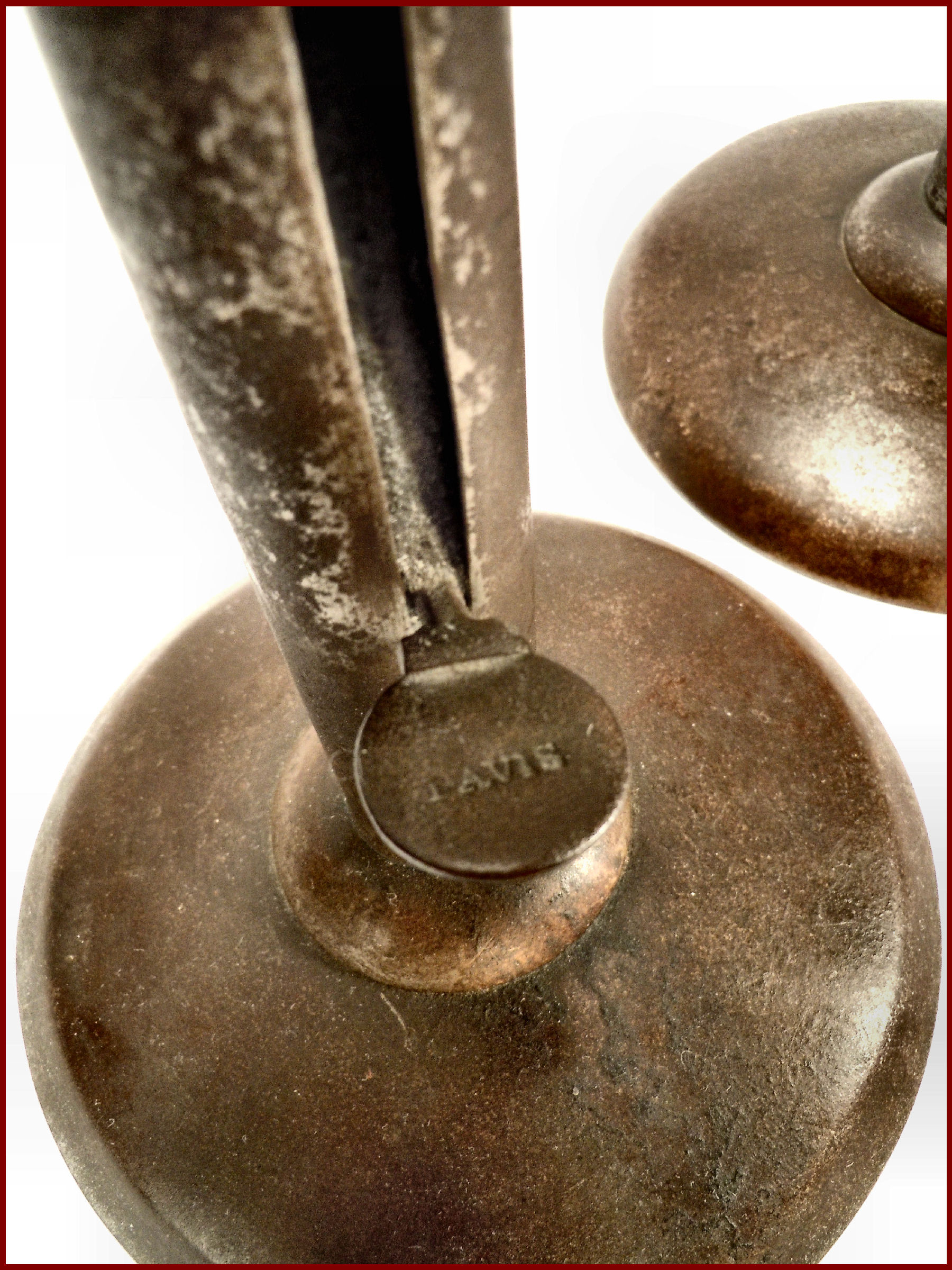 The hog scraper candlestick was mainly manufactured in England is an early (ca. 1780 –1860). They where a lighting device commonly used in 19th-century North America and Britain. The lighting device was manufactured of tempered sheet iron, wrought in several pieces and joined together by metal joinery.